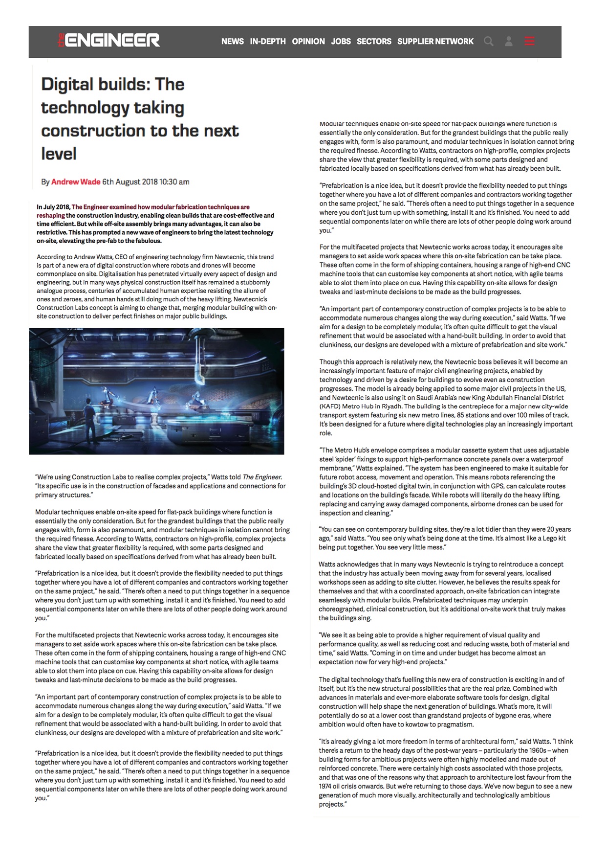 Digital builds: The technology taking construction to the next level. The Engineer magazine.
