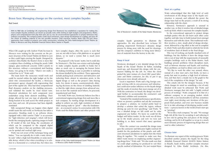 Brave face: Managing change on the curviest, most complex facades. Construction Research and Innovation journal.